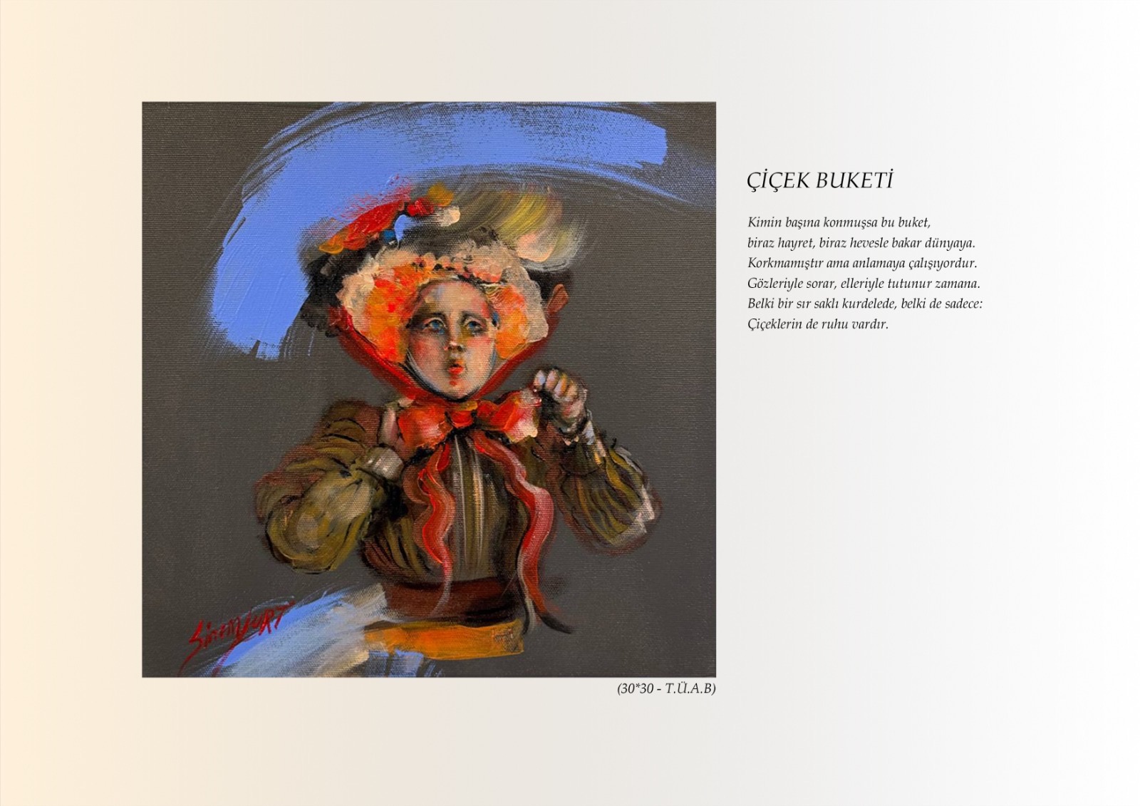 Sinem Kurt, Karadeniz Teknik Üniversitesi Fatih Eğitim Fakültesi Güzel Sanatlar Bölümü’nden dereceyle mezun oldu. Eğitim yıllarında usta ressamların yanında yetişerek resim sanatında akademik temellerini güçlendirdi. Özellikle renk, kompozisyon ve figüratif anlatım üzerine yoğunlaştı; sanat tarihinde Rönesans ışık–gölge tekniklerinden, modern ve çağdaş sanatın teatral, ironik diline uzanan geniş bir yelpazeyi kendine özgü üslubunda yeniden yorumladı. Kurt’un sanatsal üretiminin merkezinde geliştirdiği “Toprak Ana / Boyutlar Arası Yolculuk” serisi bulunur. Bu seri, tarihsel, masalsı ve fantastik öğeleri bir araya getirerek izleyiciye çok katmanlı bir anlatım sunar. Figürleri ve sahneleri teatral bir atmosferde ele alır; ironi, toplumsal eleştiri ve masalsı duyarlılık onun resim dilinin ayırt edici özellikleridir. Kobalt mavisi, turkuaz, sıcak kırmızı, zümrüt yeşili gibi güçlü renkleri dinamik fırça darbeleriyle buluşturarak eserlerinde dramatik bir yoğunluk yaratır. Yaklaşık 40 yıllık sanat yolculuğu boyunca Türkiye’nin farklı şehirlerinde kişisel ve karma sergilere katılan Kurt’un eserleri, Kültür Bakanlığı onaylı koleksiyonlarda ve özel koleksiyonerlerde yer almaktadır. Sanatçı, ArtAnkara, IAF, Bodrum ArtFair, ArtConta gibi önemli fuarlarda sergilenmiş; aynı zamanda Artisan Galeri ve çeşitli prestijli mekânlarda eserleriyle izleyiciyle buluşmuştur. 2025 yılı itibarıyla “Toprak Ana Tiri Kara” başlıklı büyük ölçekli serisi üzerinde çalışmakta olan Kurt, çok parçalı panolar, varaklı çerçeveler ve sahne kurgularıyla resimlerini mekânsal enstalasyonlarla bütünleştirmektedir. Bunun yanında akademik birikimini geliştirmek üzere Başkent Üniversitesi’nde Müzecilik alanında yüksek lisans yapmaktadır. Sanatçı, yalnızca kendi üretimiyle değil; genç kuşak öğrencilerin portfolyo hazırlıklarına ve sanat eğitimine katkılarıyla da tanınır. 2025 yılında öğrencilerinin bir kısmı hazırladığı portfolyolarla İtalya, İngiltere ve Prag’daki sanat okullarına burslu olarak yerleşmiştir. Bugün Sinem Kurt’un eserleri; teatral ironisi, tarihsel göndermeleri, masalsı dili ve güçlü renkleriyle çağdaş Türk resminde kendine özgü bir konum edinmiştir. Alice gibi bir dünyam var benim arada bir tavşan deliğine yuvarlanıyorum gerçeklik algımı yitiriyorum çünkü başka türlü bir yaşam şekli bilmiyorum …
