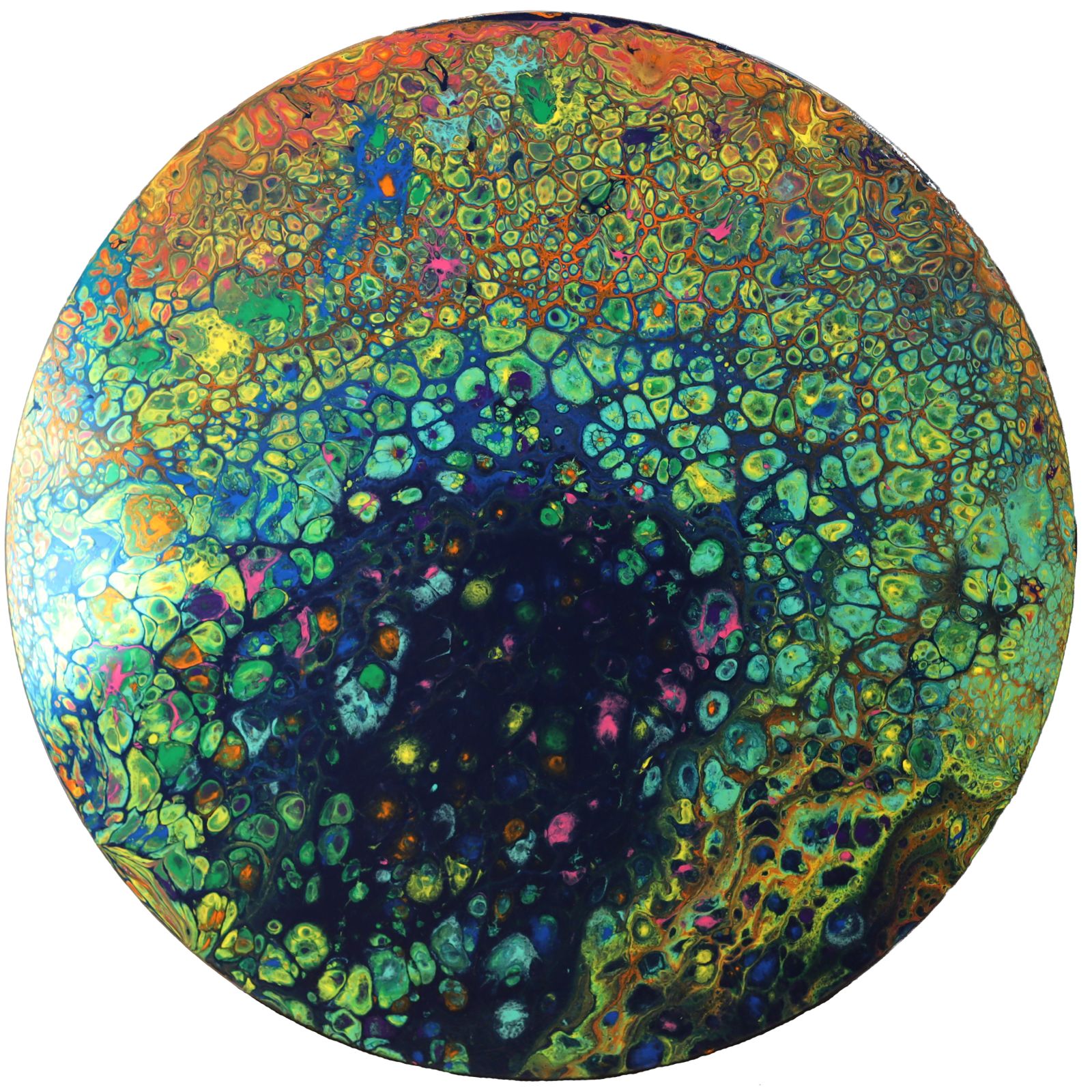 Bu eser, doğanın mikroskobik dünyasında saklı olan yaşam enerjisinin zaman içinde katman katman görünür hâle gelişini anlatır. Her hücre formu, büyüyen, çoğalan ve durmaksızın yenilenen bir döngünün izini taşır; başlangıç ile devam arasındaki o sessiz akışı fısıldar. Renklerin organik örgüsü, hem içsel bir evreni hem de yaşamın kendi ritmiyle sürüp giden sürekliliğini yansıtır. Yakından bakıldıkça çoğalan detaylar, zamanın küçük anlar üzerinden genişleyerek bir bütüne dönüşmesini hatırlatır: Her hücre bir an, her an döngünün kendisidir.