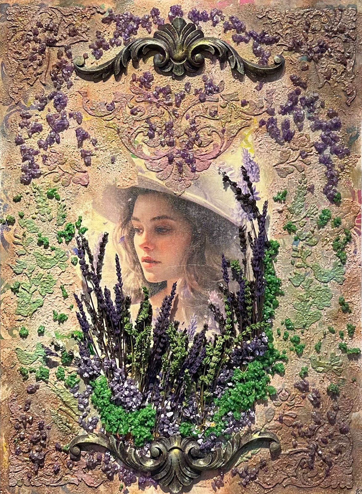 “Ruhun Bahçesi”, lavantanın zarif kokusu ve kadın ruhunun derinliklerini bir araya getiriyor. Kadın figürü, lavanta çiçekleriyle çevrili olarak, doğanın ve kadınlığın özünü yansıtır. Lavanta, ruhsal dinginliği ve huzuru simgelerken, her bir çiçek, kadının yaşamındaki duyguları ve özel anıları temsil eder. Eser, kadının içsel dünyasının bir bahçesi olarak izleyiciyi duygusal bir yolculuğa davet ediyor.