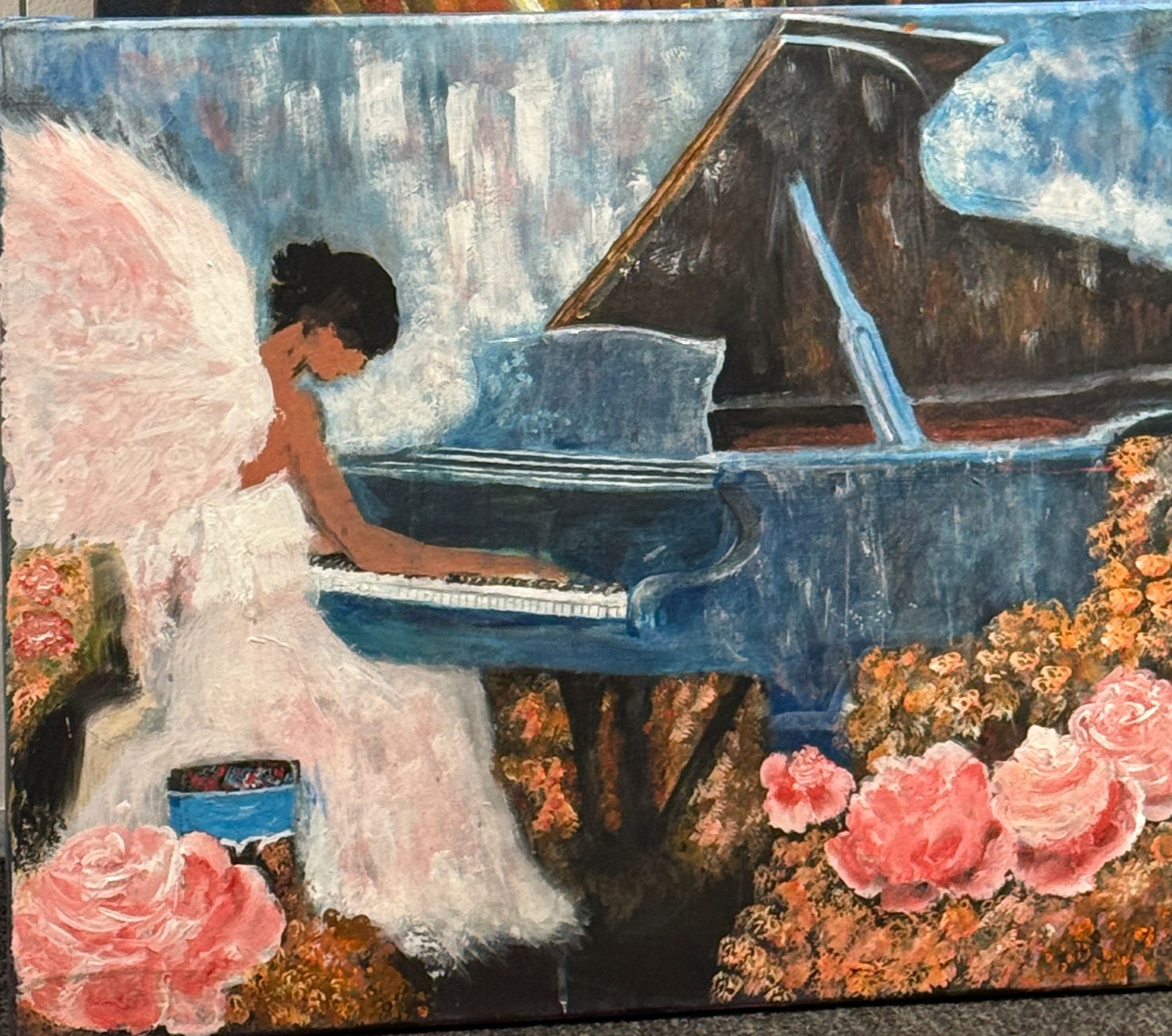 Melek figürü ve piyano aracılığıyla saflık, iç huzur ve ruhun müzikle kurduğu sessiz bağ betimlenmiştir. Pastel tonlar, dinginlik ve korunma hissini güçlendirir.