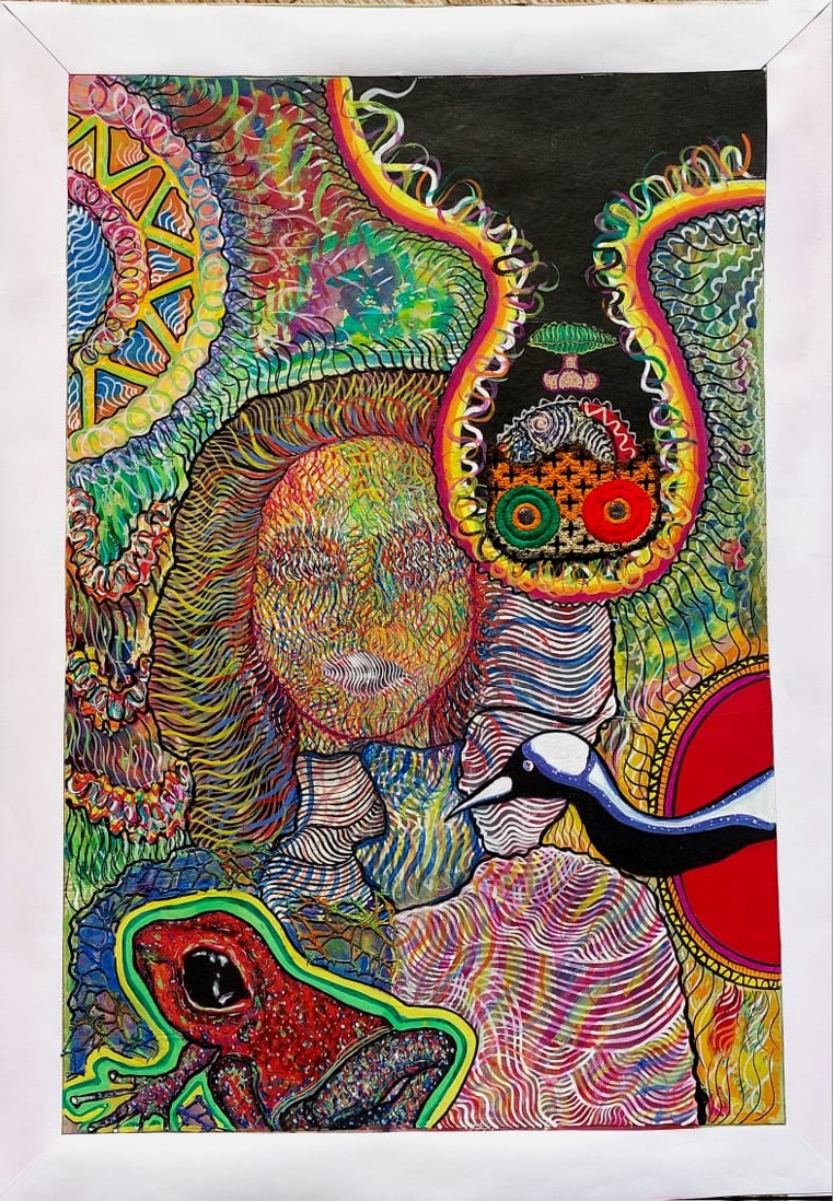 Artist Name: Ghazal Alizadeh Size:50×70 Technique: mixed material,watercolor,marker,acrylic on board Year of creation:2024