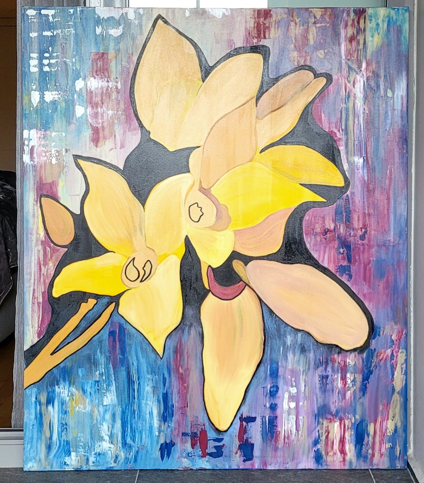 Bu tuval, renkler aracılığıyla kurulan bir yakınlaşma hâlini taşır. Yüzeydeki canlılık, karşılaşmanın yarattığı heyecanı ve duygunun hafifliğini sessizce yayar.