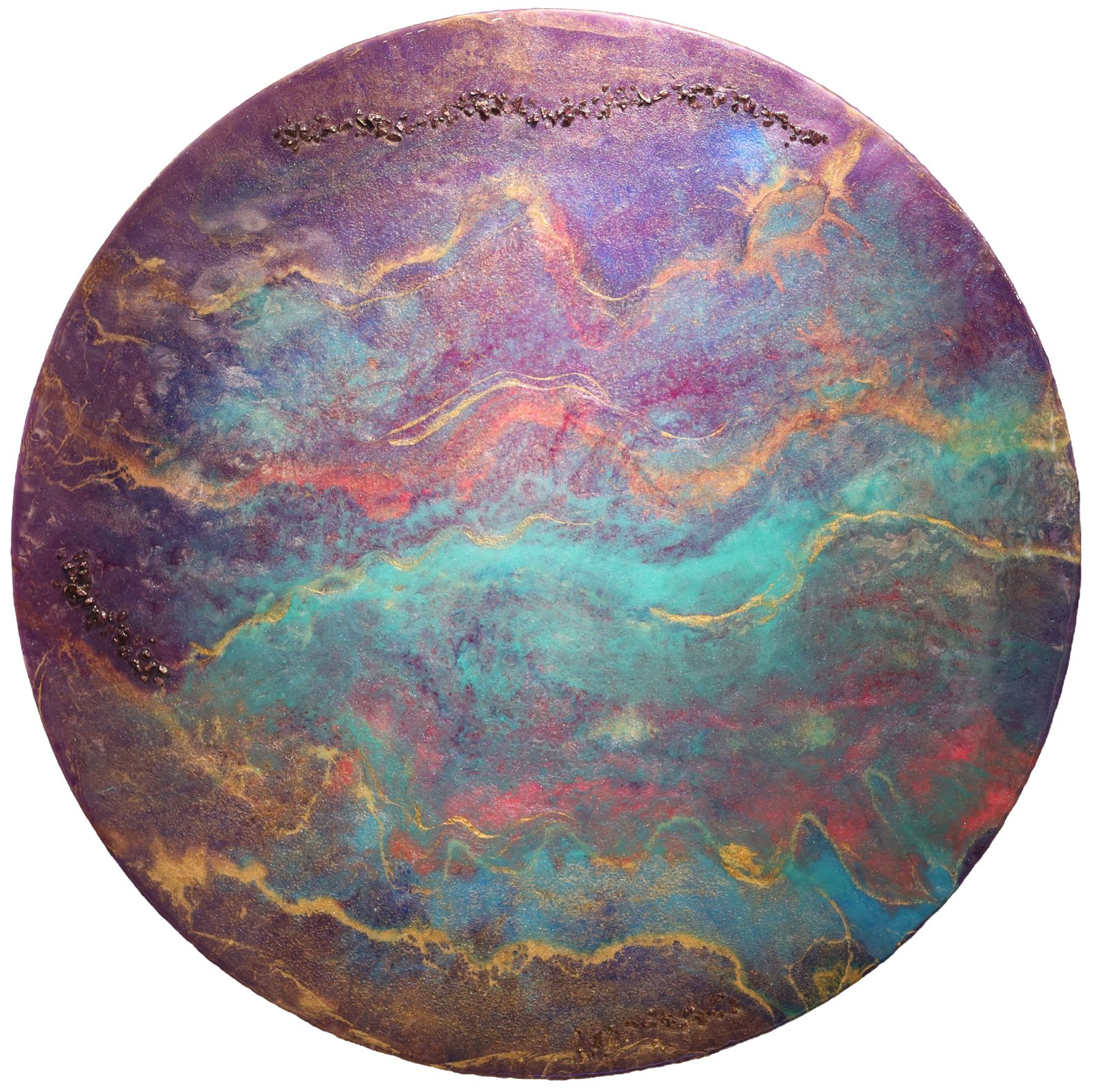 Zamanın İzleri, akıp giden zamanın yüzeyde bıraktığı sessiz tortulara odaklanır. Renkler ve katmanlar, bir anın geçip gitmediğini; aksine hafızada ve bedende iz bırakarak varlığını sürdürdüğünü fısıldar. Bu yüzeyde görünen her geçiş, yaşanmış bir duygunun, alınmış bir kararın ya da sessizce katlanmış bir anın karşılığıdır. Eserdeki akış, zamanın doğrusal olmadığını hatırlatır. Bazı izler silikleşir, bazıları derinleşir; kimi yerlerde altın tonlar gibi parlayarak görünür hâle gelir. Bu izler, kusursuz bir bütünlükten değil, yaşanmışlıktan doğan bir dengeden beslenir. Zamanın İzleri, izleyiciyi durmaya davet eder. Geçmişi geride bırakmak için değil, onu fark ederek şimdiye taşımak için. Çünkü zaman geçmez; dokunur, iz bırakır ve bizi biz yapan katmanlara dönüşür.